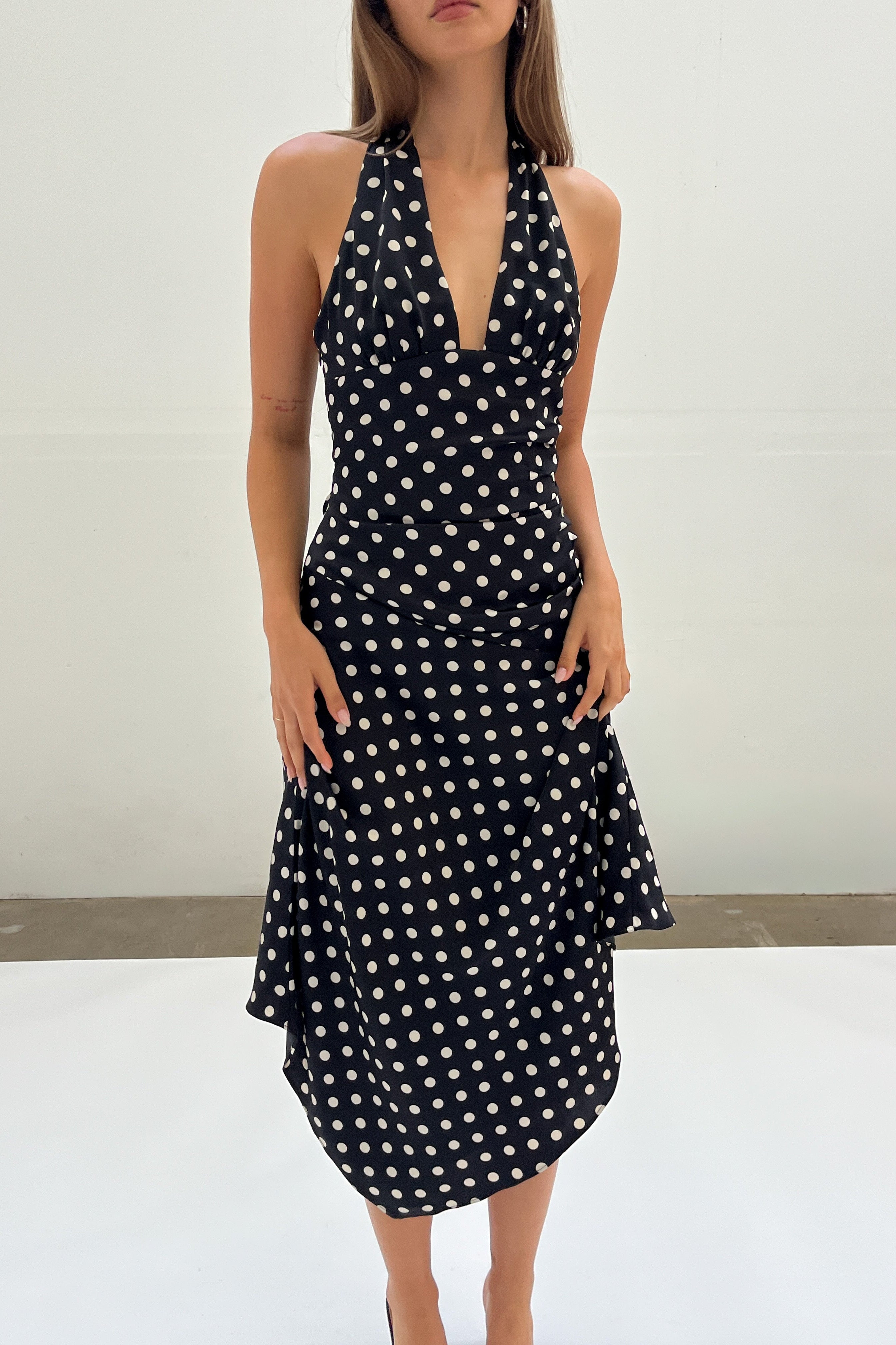 Polka Dot Halter Midi Dress